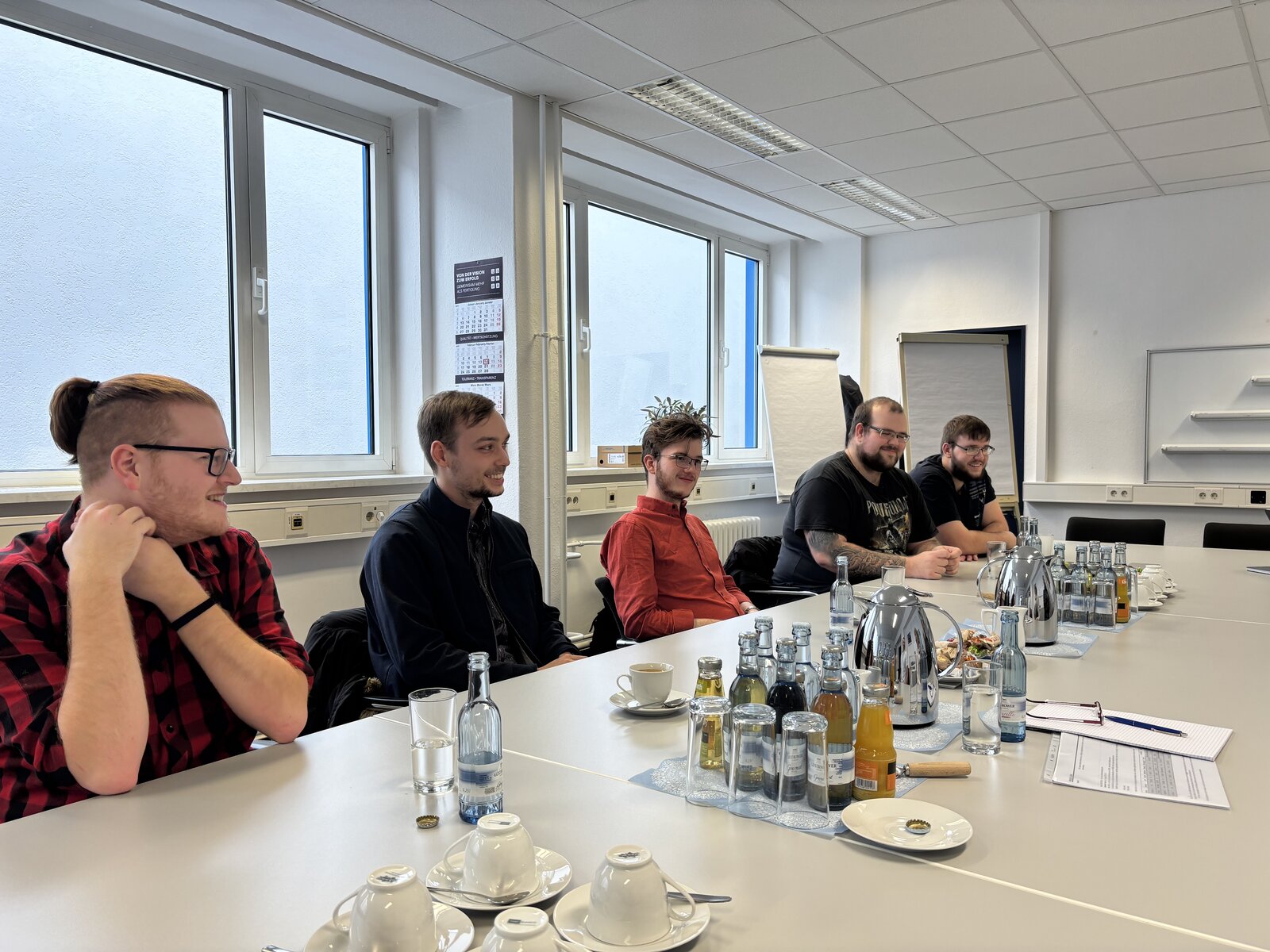 Our 5 apprentices successfully passed their final exam as Electronics Technicians for Devices and Systems yesterday. During the ceremonial handover of their employment contracts and the farewell of one apprentice, all of them shared their experiences from the practical exam, reflected on their training period, and looked ahead to the future with their new leaders. For our two trainers, this is always a special event, as they have accompanied the apprentices throughout the 3 ½ years of their training and witnessed their professional and personal development.